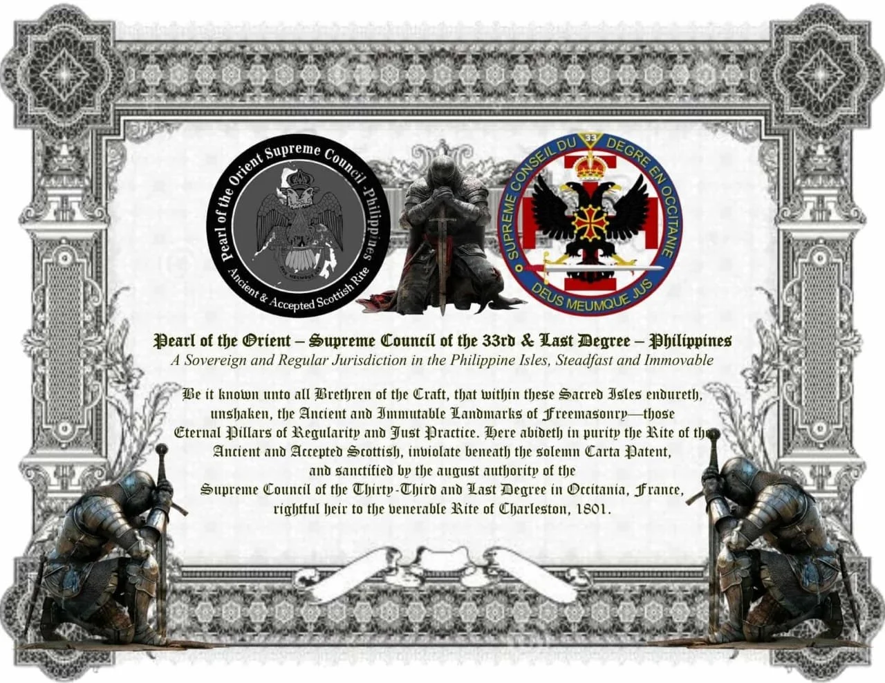 Pearl of the Orient Supreme Council of the 33rd & Last Degree - Philippines, under the light of the Ancient and Accepted Scottish Rite, Charleston 1801 and in Fraternal Unity with the Supreme Councils of the World.
